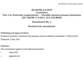 ● AS 60598.2.4:2019 Amd 1:2025(可移式通用灯具补充标准修订):